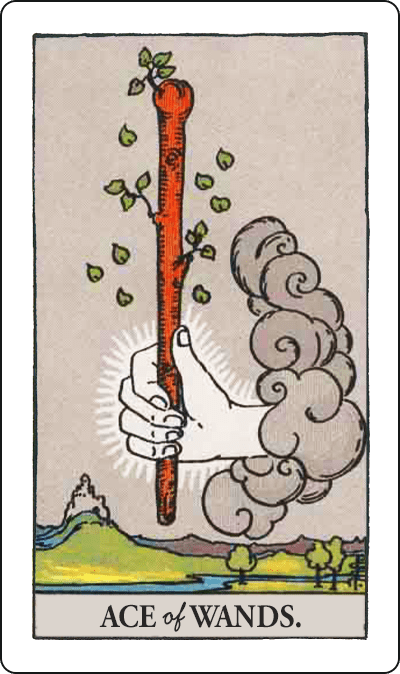 ワンドのAは、情熱・始まり・生命力を象徴するカードです。