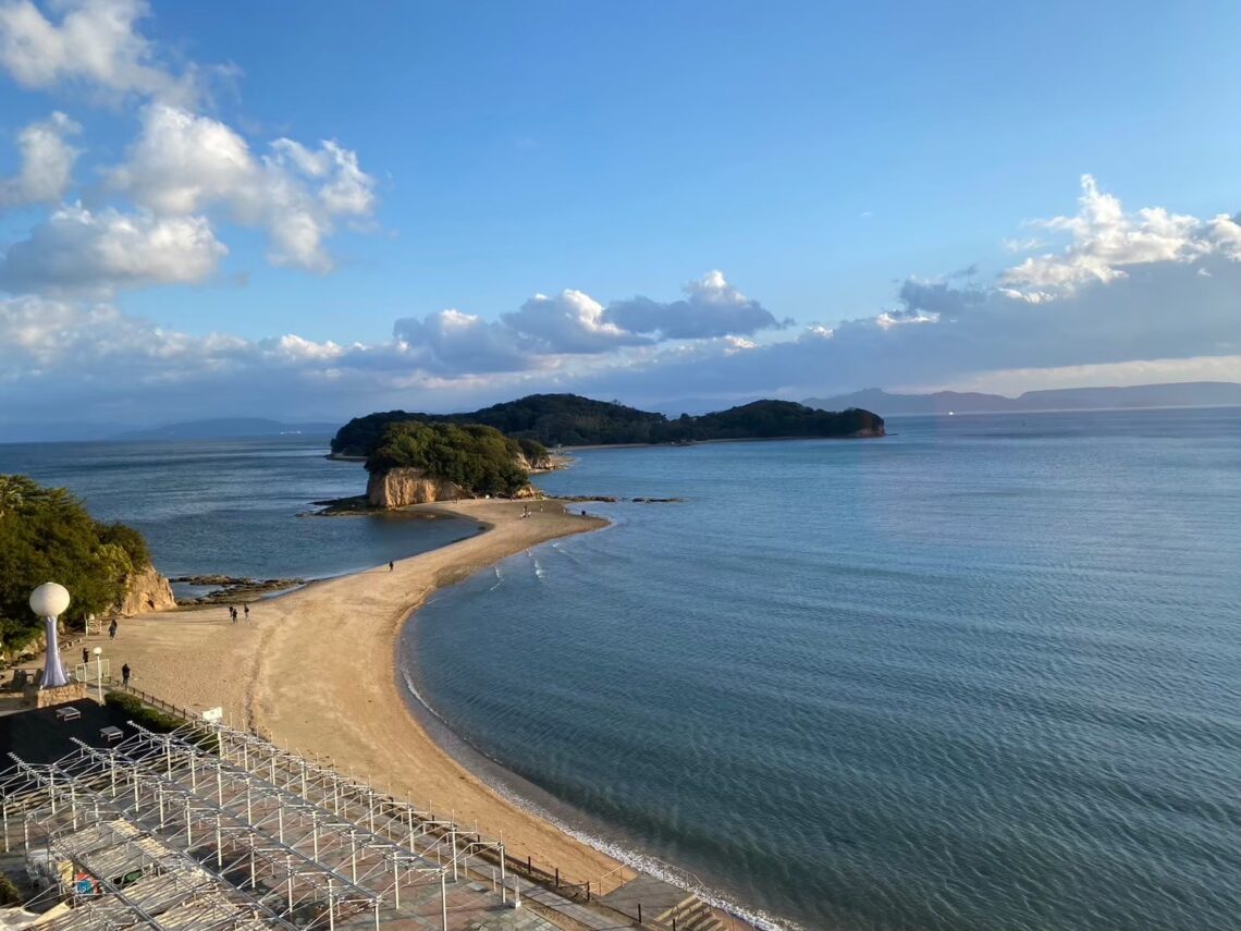 エンジェルロードは、潮が引くときだけ500m前後の砂の道が現れる現象で、1日2回しか歩けない貴重なタイミング。この瞬間を狙って訪れるのが、エンジェルロード体験の醍醐味です。今回はそんなエンジェルロードをご紹介します🌟