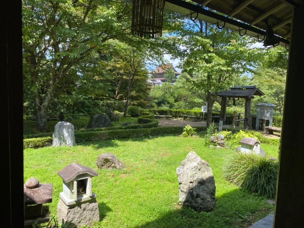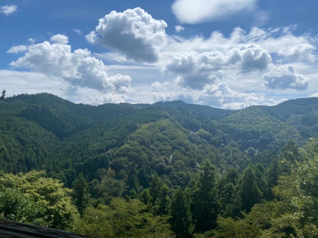 縁側に座って外を眺めていると、山々がゆっくりと重なり合い、時間まで溶けていくよう。春には一目千本の桜が広がるそうですが、桜がなくても、この景色そのものがすでに完成されています。