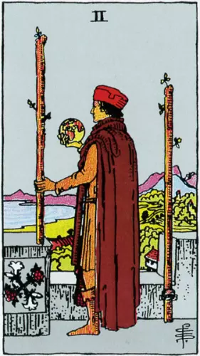 ふと頭に浮かんだのがタロットのワンドの2でした。