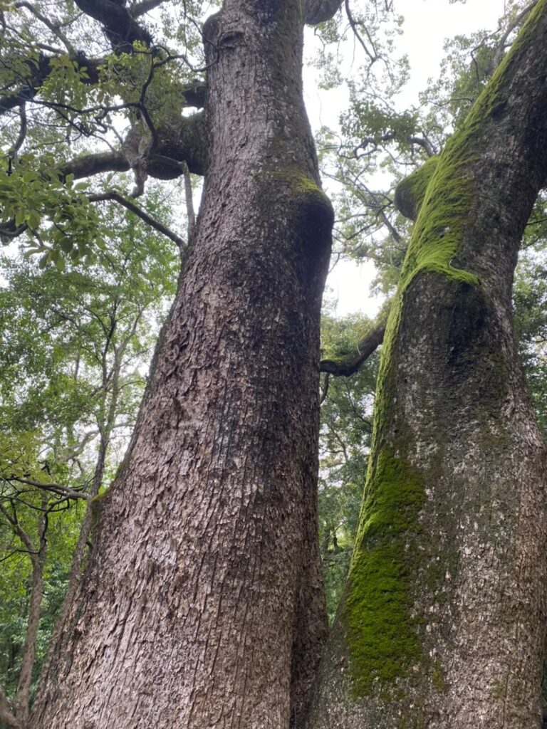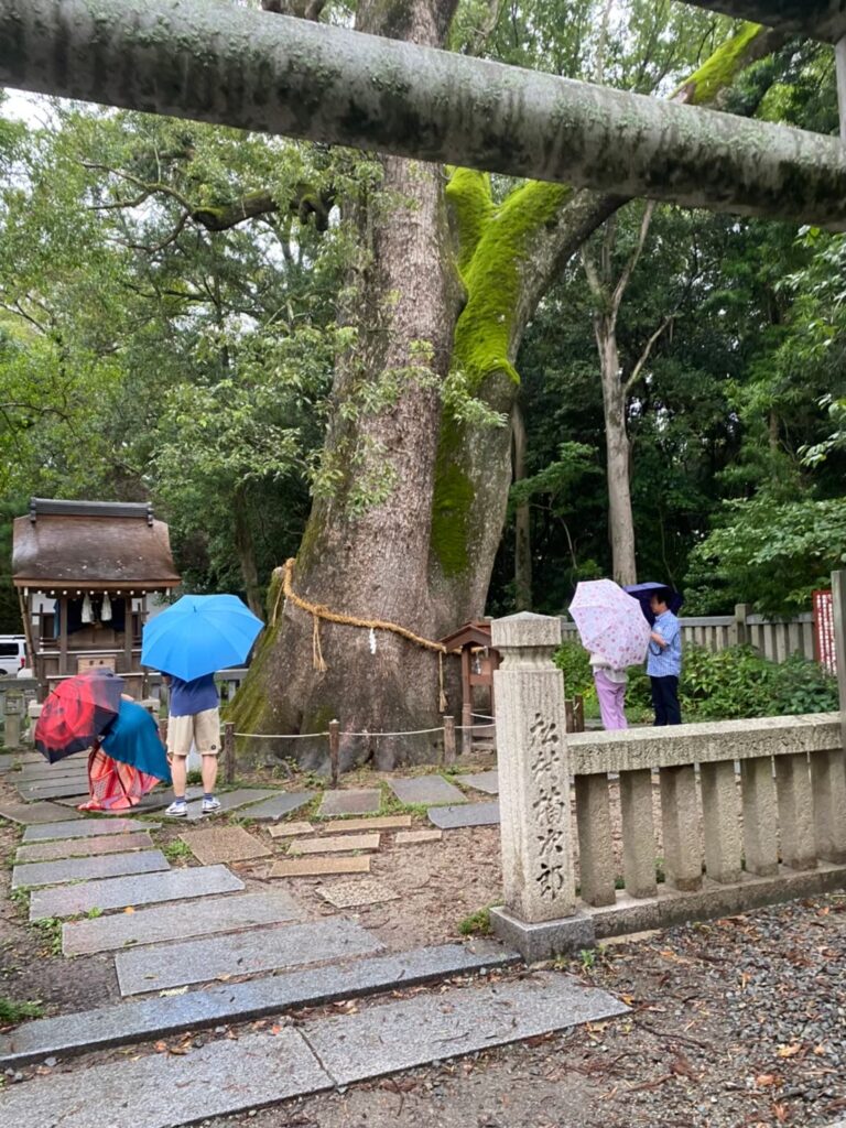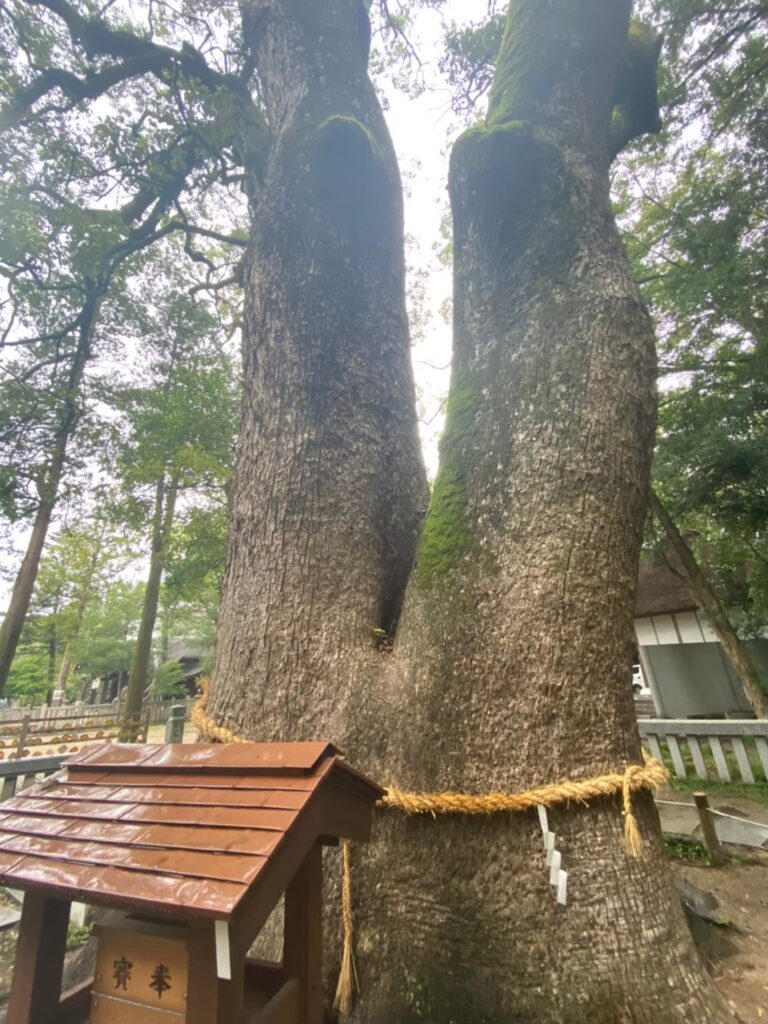 参道を歩きながら目に入るのは、静かに寄り添う「夫婦大楠」。