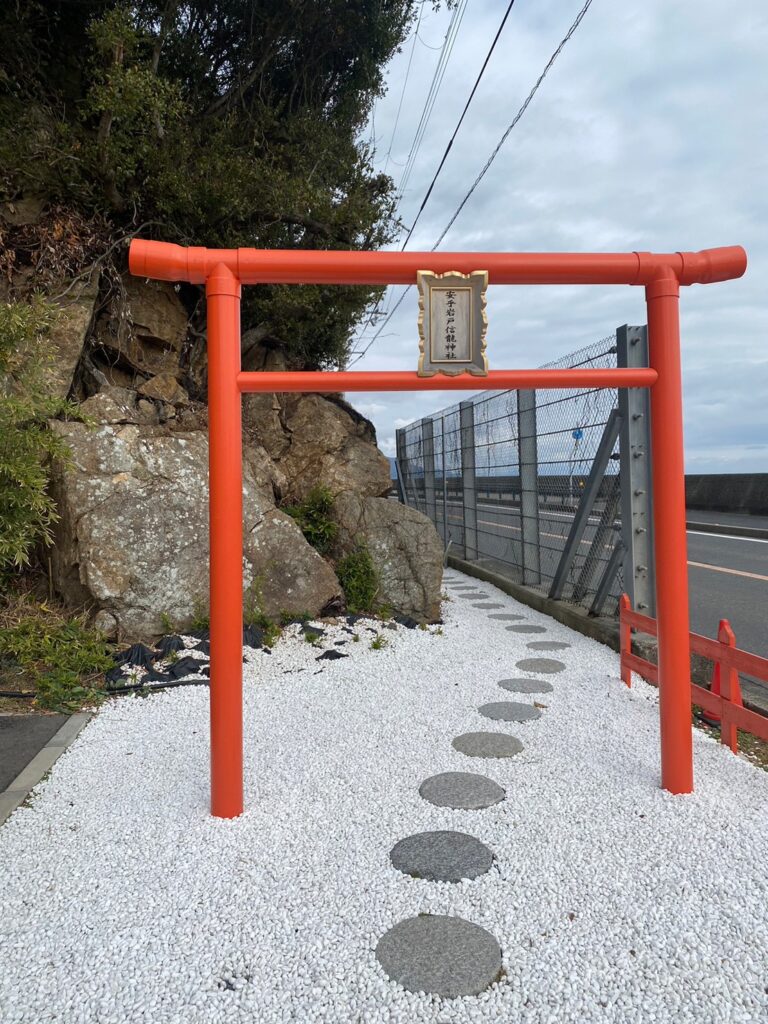 海と空の青が広がる淡路島の東海岸。車で走っていると、ふと現れる赤い鳥居がその入口です。そこが 安乎岩戸信龍神社。洞窟の中に小さなお社がある、ちょっと不思議な神社です。