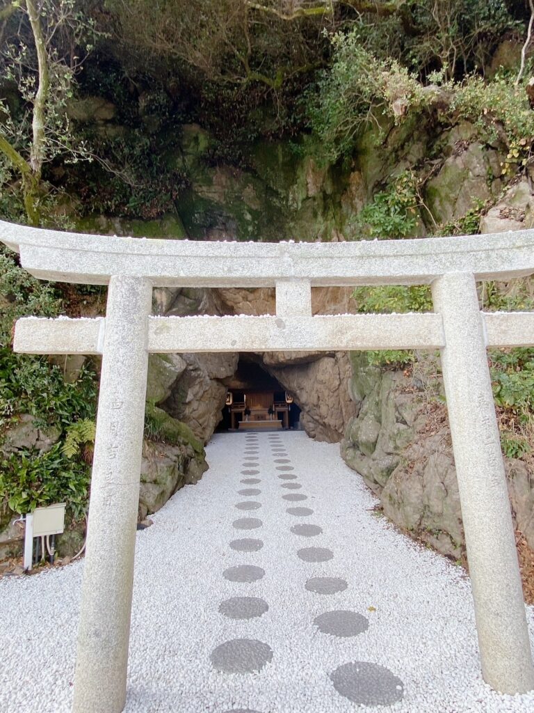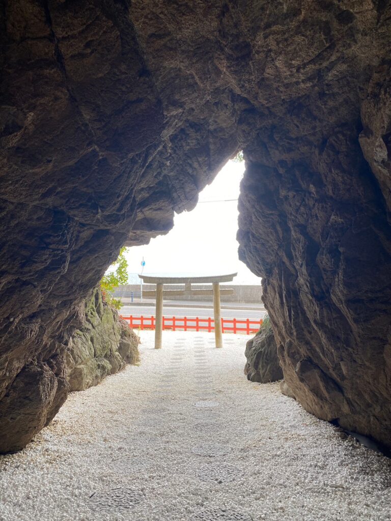 鳥居をくぐると、波の音と潮風がそっと寄り添ってきました。洞窟へ続く参道を進むと、ひんやりとした空気が流れ、まるで時間がゆっくりと静まっていくよう。洞窟の奥にある小さなお社は、そんな龍神の誠実さと信頼を象徴するかのようで、訪れるだけで心が整っていく気がします。