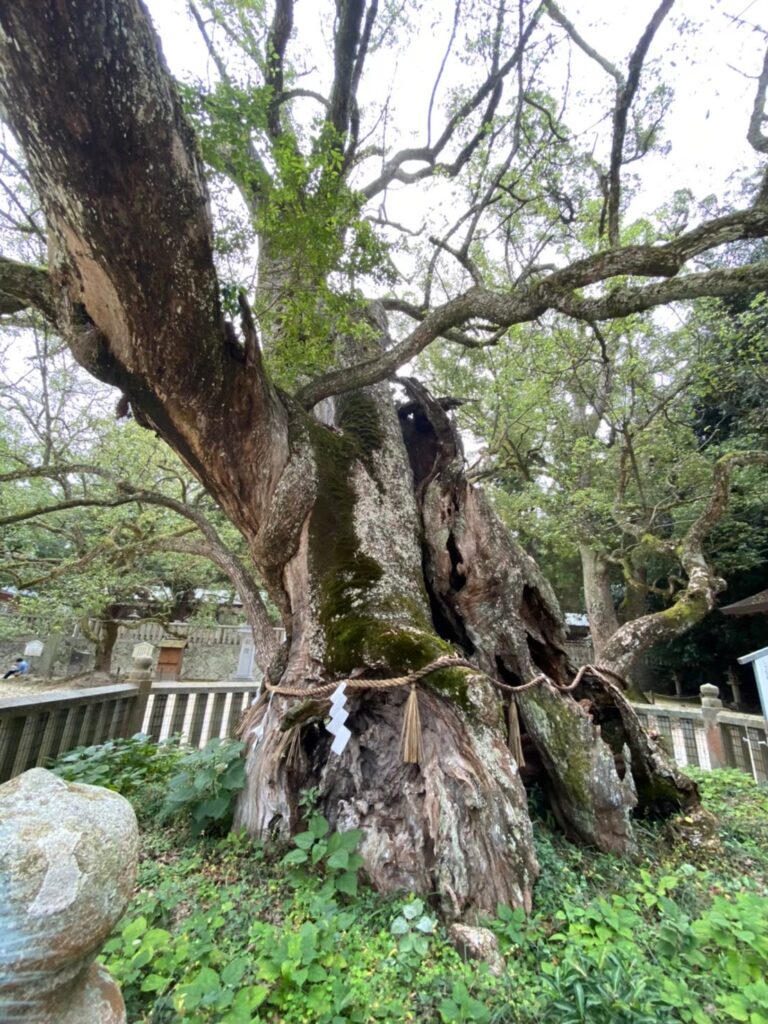 境内に足を踏み入れると、まず目に入るのが大きなクスノキのご神木です。中には樹齢2600年以上とも言われるものもあり、長い歴史を静かに見守ってきたその姿には、圧倒されるような存在感があります。木々に囲まれた参道を歩いていると、どこか神秘的で落ち着いた空気を感じることができ、自然と心が整っていくような気持ちになります。