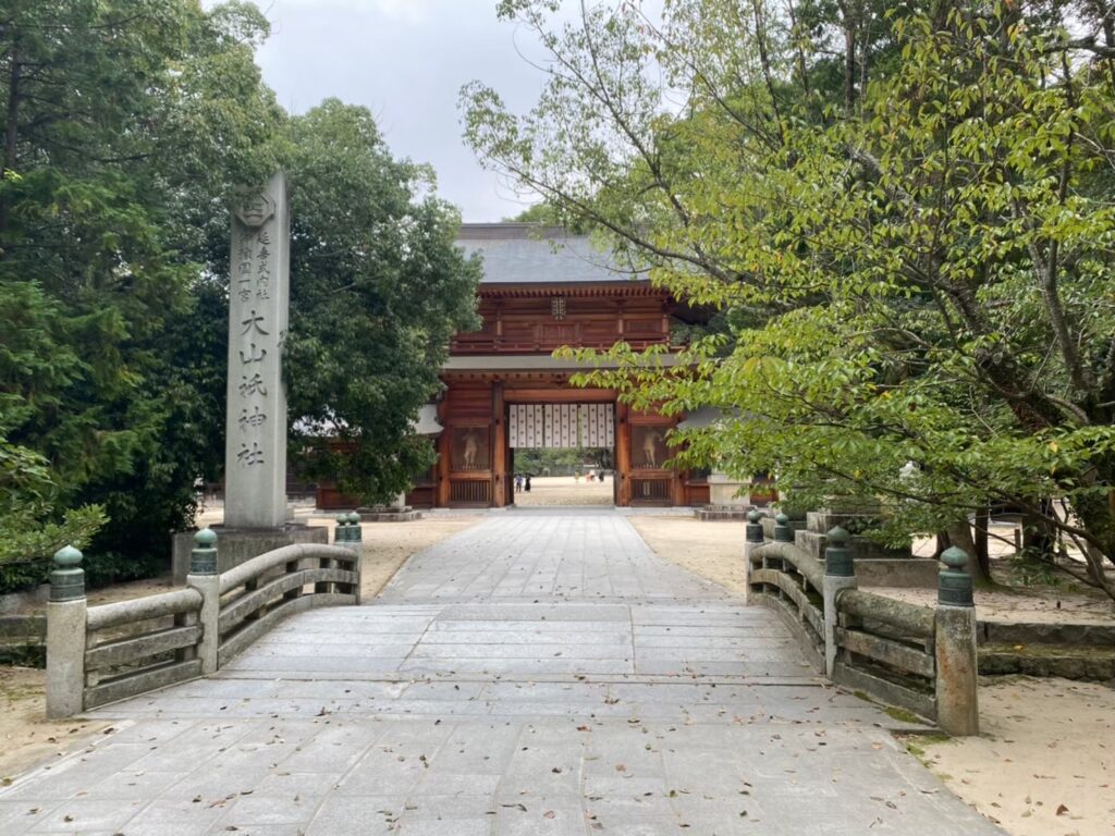 この神社で祀られているのは、大山積大神です。山の神様であると同時に、海や武運を司る神様とも言われており、古くから武将たちの信仰を集めてきました。源義経や源頼朝など、多くの武将が戦勝祈願に訪れ、武具や鎧を奉納したと伝えられています。