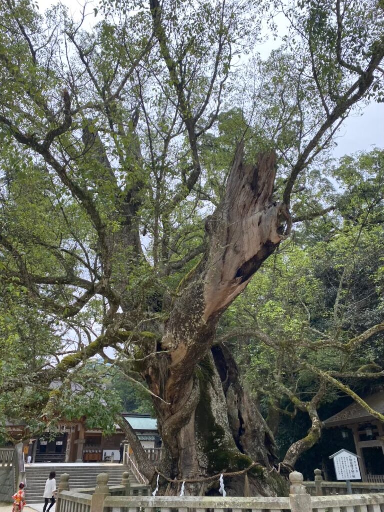 境内には樹齢数千年とも言われる大きなクスノキが立ち並び、その堂々とした姿には圧倒されるような存在感があります。静かな参道を歩きながらその木々を見上げていると、自分の挑戦や目標について、改めて向き合う時間が生まれるようにも感じられます。