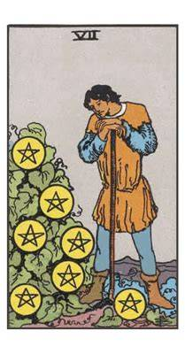 もしこの神社のエネルギーをタロットカードで表すとしたら、思い浮かぶのは「ペンタクルの7」です。ペンタクルの7は、畑で実りを見つめながらこれまでの努力を振り返る人物が描かれたカードで、努力の積み重ねや、ゆっくりと成長していく時間を象徴しています。