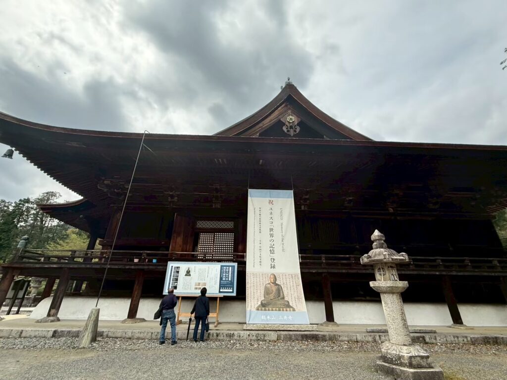 境内はとても広く、国宝や重要文化財の建物が点在しています。特に有名なのが金堂です。落ち着いた木造建築の佇まいは堂々としていて、長い年月を経てきた重みを感じさせます。また、弁慶が鐘を引きずったという伝説で知られる「弁慶の引きずり鐘」もあり、歴史好きにはたまらない見どころのひとつです。