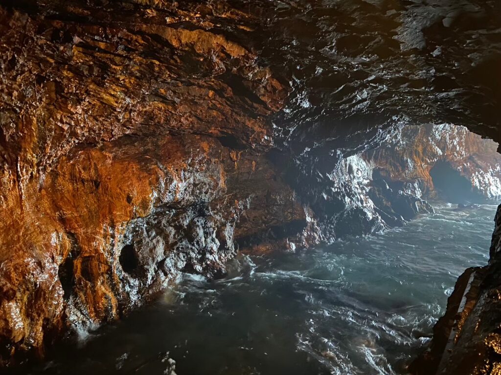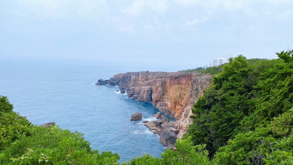 最初に訪れた三段壁。断崖の上に立った瞬間、強い風が一気に吹き抜け、目の前には荒々しい海が広がります。波が岩に打ちつける音は想像以上に大きく、体の奥まで響いてくるような感覚。その場に立っているだけで、心の奥に抱えていたものが揺さぶられるようでした。
