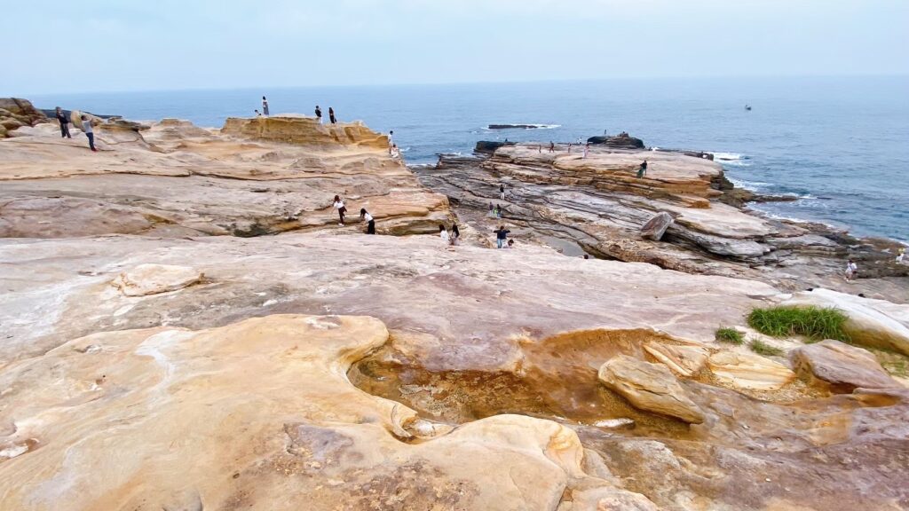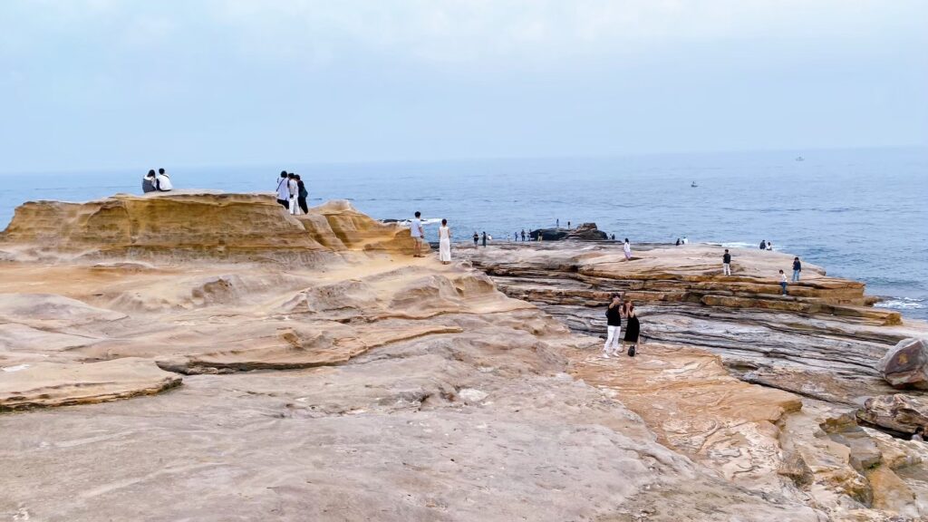 三段壁では立ち止まって海を見つめている人が多かったのに対して、千畳敷では岩の上を歩いたり、座ってのんびり過ごしたりと、それぞれが自由に時間を楽しんでいる様子が印象的でした。同じ海なのに、こんなにも感じ方が違うのかと少し驚きます。