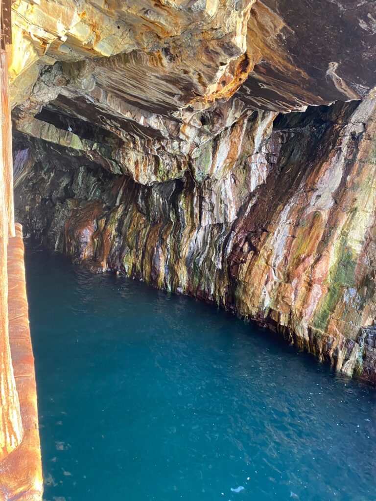 まず訪れたのは三段壁。断崖の上に立った瞬間、強い風とともに視界いっぱいに広がる太平洋の景色に圧倒されます。切り立った崖に打ちつける波の音は大きく、自然の力の荒々しさを全身で感じる場所。どこか緊張感があり、ただ眺めているだけなのに心の奥にまで響いてくるような不思議な感覚がありました。