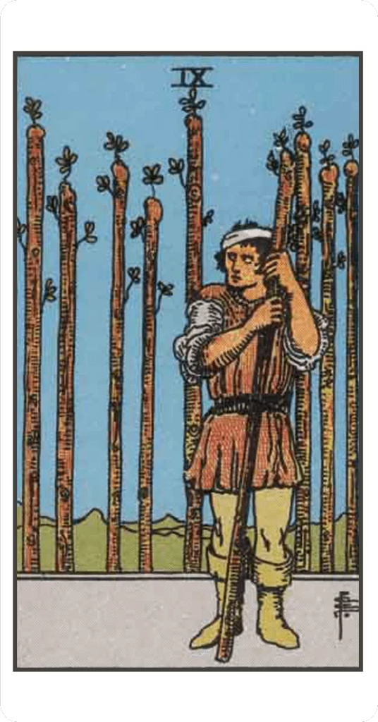 ロットカードでいう ワンドの9(Nine of Wands) にとてもよく似ています。