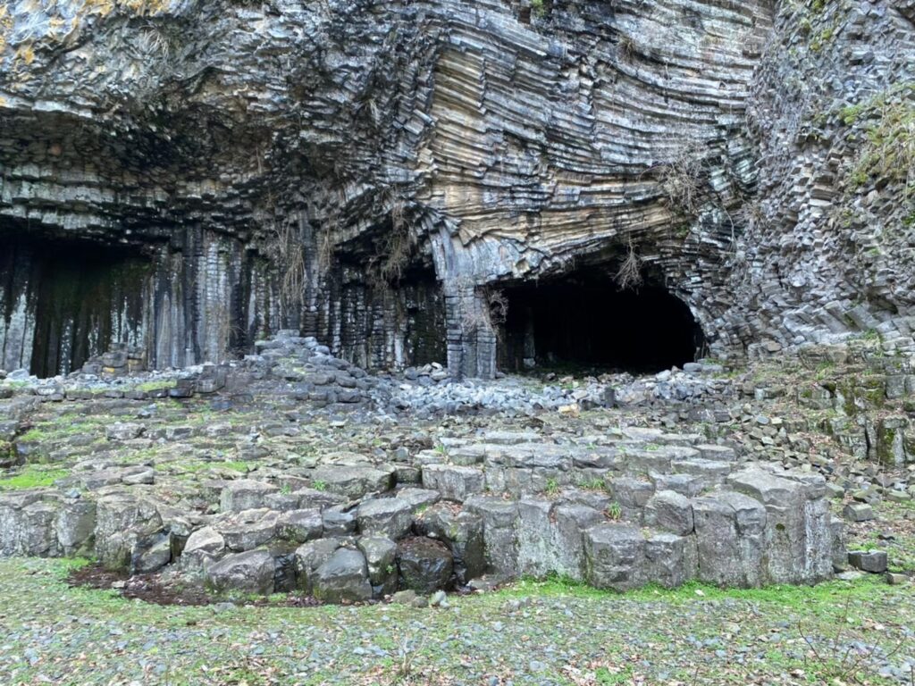 洞窟の中に広がるのは、規則正しく並ぶ六角形の岩柱。まるで人工的に積み上げられたかのように整然としていて、「本当にこれが自然にできたものなのか」と疑ってしまうほどの美しさです。火山活動によって生まれた柱状節理が、長い時間をかけてこの形を作り上げたと知ると、自然の力と時間の深さに圧倒されます。