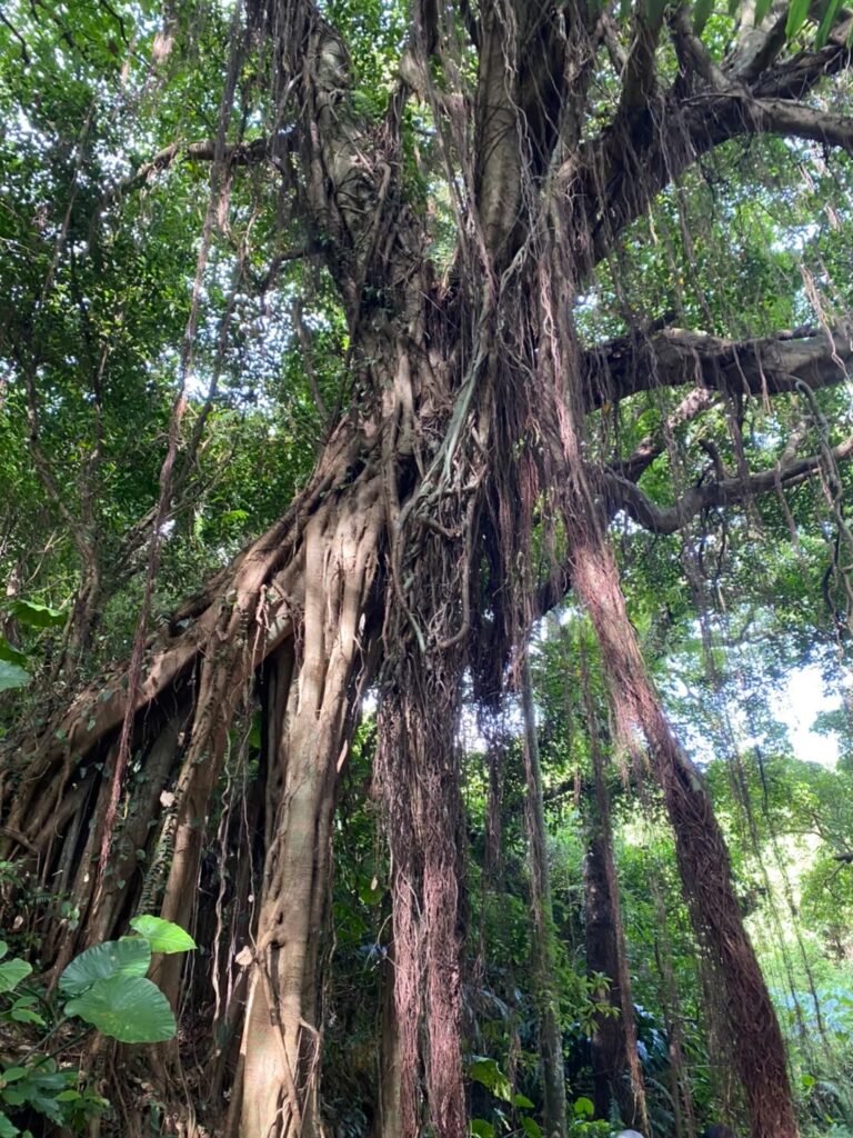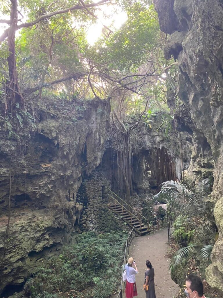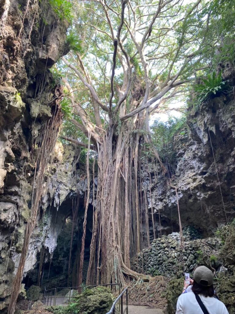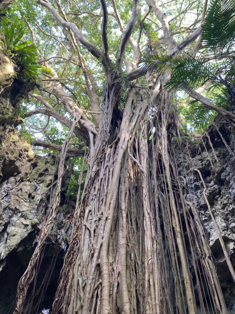 入口にある大きなガジュマルの木。まるで根が空から垂れてくるような独特の姿で、その下に立つと時間の流れがゆっくりになるように感じます。ツアー形式で進んでいくスタイルも、この場所の雰囲気に合っていて、「ただ見る」のではなく「知りながら歩く」体験ができるのが印象的でした。